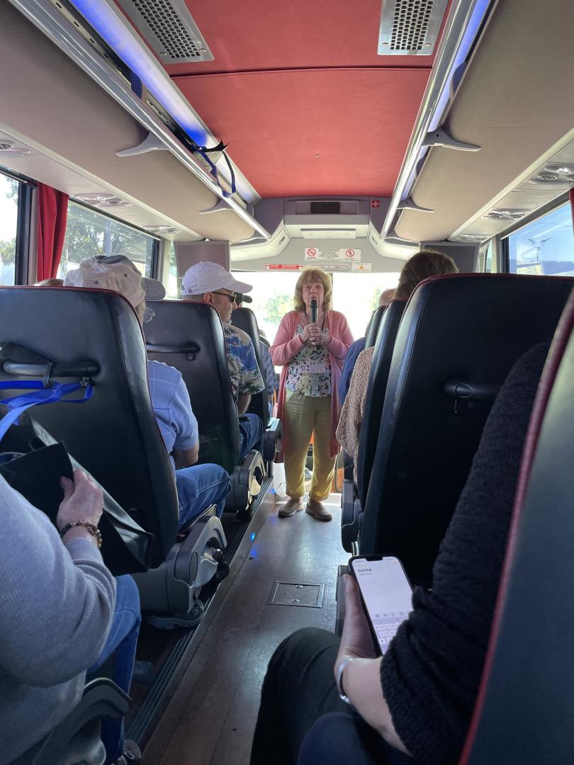 The annual General Membership meeting was conducted on the tour bus, due to showery weather at the Alameda County Fairgrounds in Pleasanton.